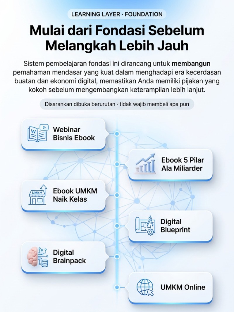 Jalur ini disusun untuk membantu Anda memahami cara belajar, berpikir, dan membangun sistem di era AI & ekonomi digital — tanpa terburu-buru jualan.