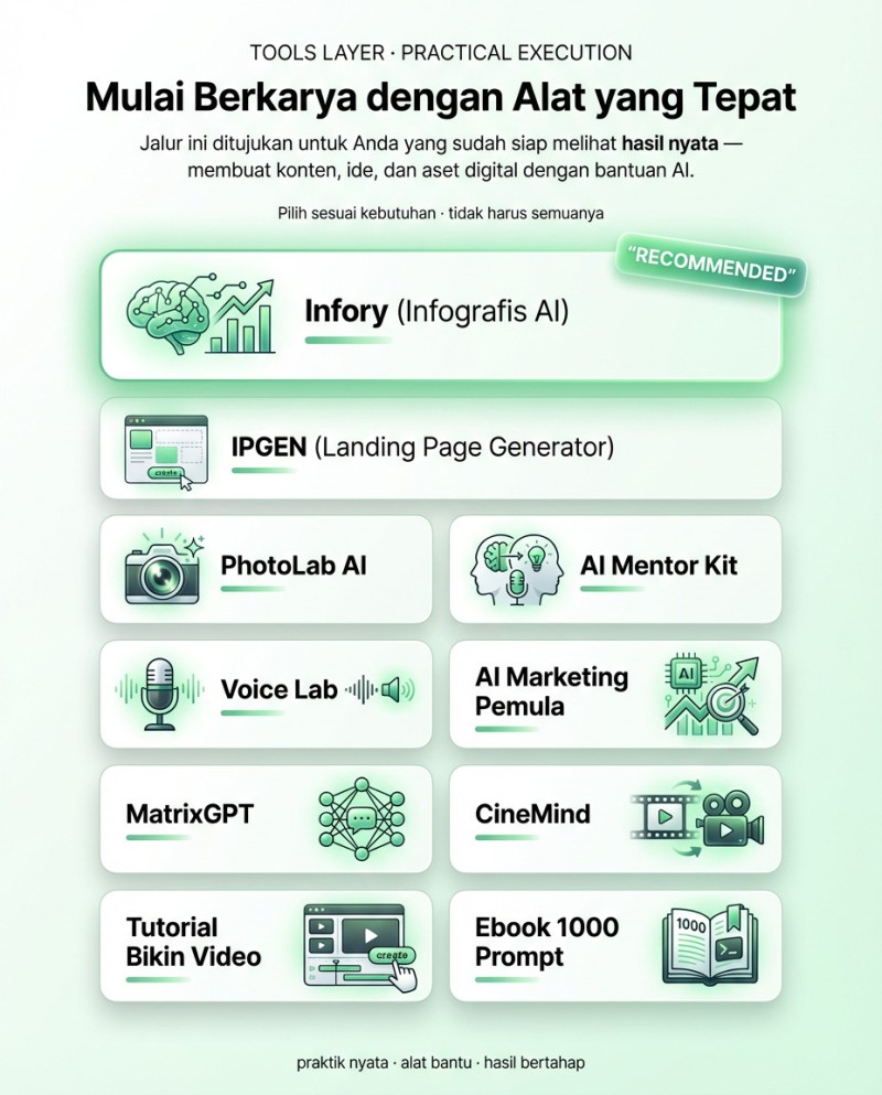 Jalur ini ditujukan untuk Anda yang sudah siap melihat hasil nyata — membuat konten, ide, dan aset digital dengan bantuan AI.